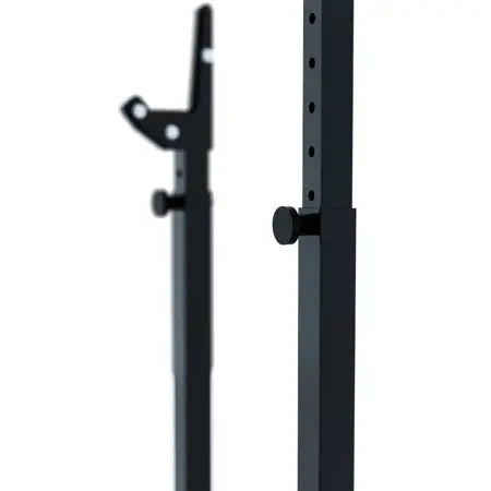 Polleo prilagodljivo stojalo za počepe predstavlja nov standard, ki kombinira stabilnost in moč narejenih iz najbolj kvalitetnega, strojno obdelanega jekla iz EU. Učinkovitost dizajna namenjenega visoko intenzivnem hardcore treningu. Naprava se hitro in enostavno zloži, trdnost stojala zagotavlja stabilnost in nosilnost 150kg.