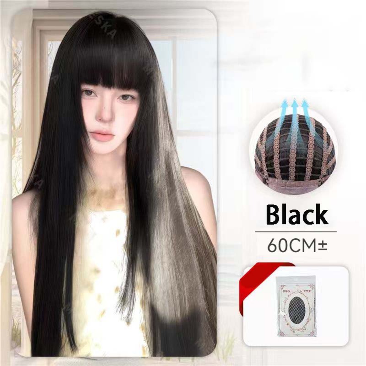 Polna dolga ravna lasulja 60cm z kapa - visoka temperaturna vlakna Black