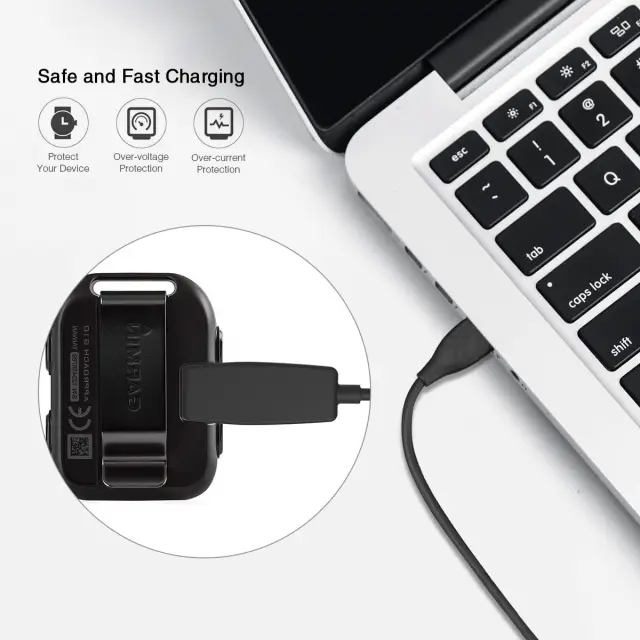 Varno polnjenje: z integrirano zaščito pred prenapetostjo in prevelikim tokom polnilec nudi varno in varno polnjenje vaše ure Garmin Forerunner.