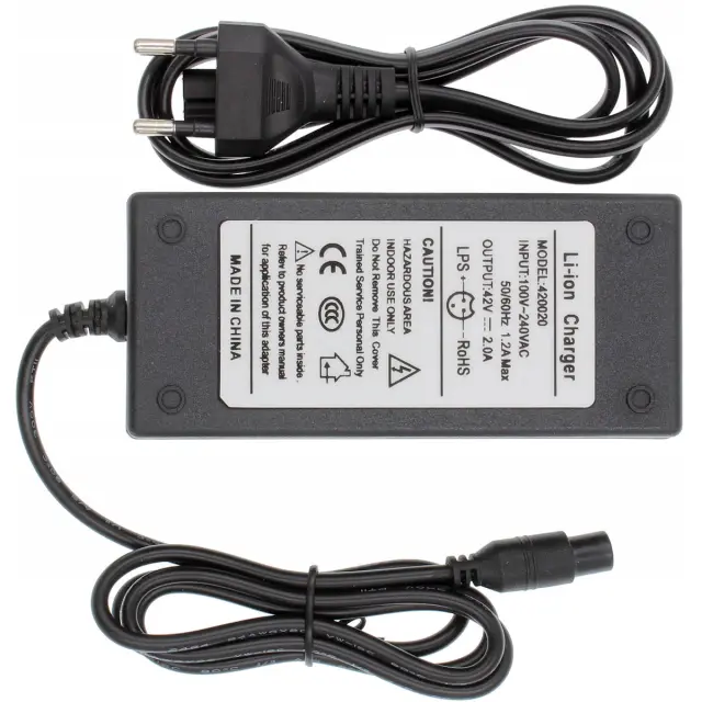 Rosfix Polnilec 36V 42V za Električni Skuter, Hoverboard, Kolo – 3-Pinski Vtič, 1,5A, LED | 100–240V AC