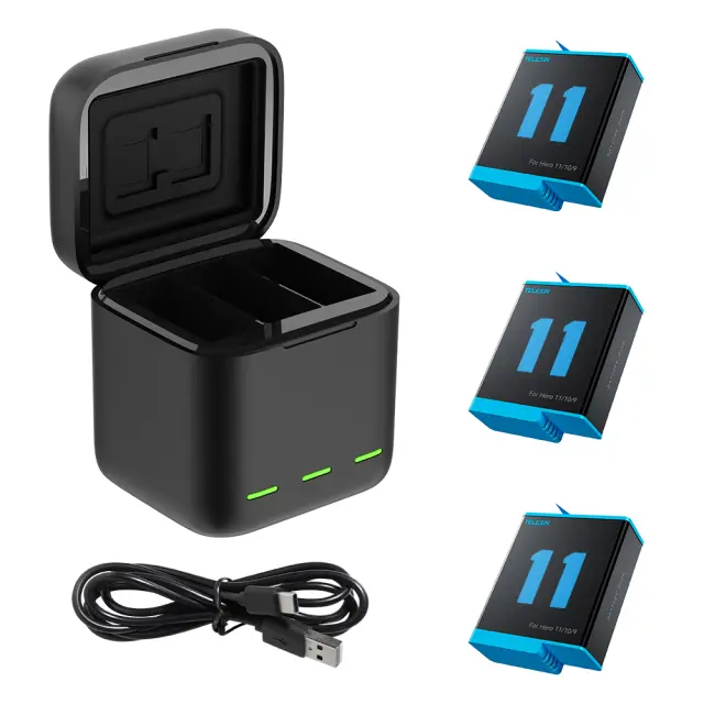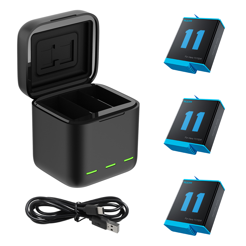 Iščete način za udobno, a varno shranjevanje dodatkov za GoPro Hero 11/10/9? Polnilec Telesin vam bo zagotovo prišel prav! Izdelek je zasnovan za namestitev do 3 baterij hkrati. Vanj lahko shranite tudi 2 pomnilniški kartici. Ta praktična naprava vam bo olajšala vzdrževanje baterij.