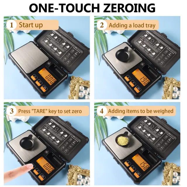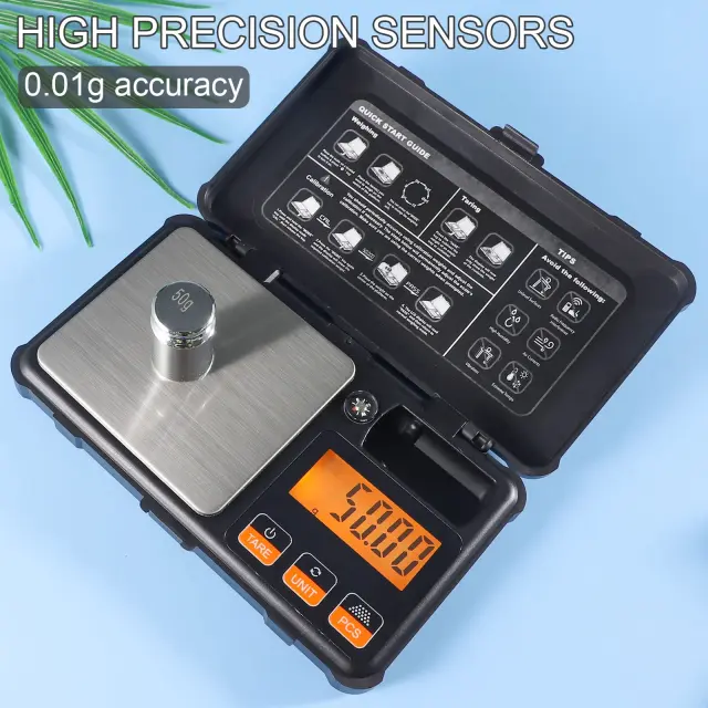 Digitalna tehtnica z gravitacijskim senzorjem z visoko občutljivostjo tudi za majhne količine. Popolna, ko je potrebna visoka natančnost, kot so nakit, dragi kamni, prah, čaj, tobak itd. Tehtnica lahko tehta od 0,03 g do 200 g in ima natančnost 0,01 g.