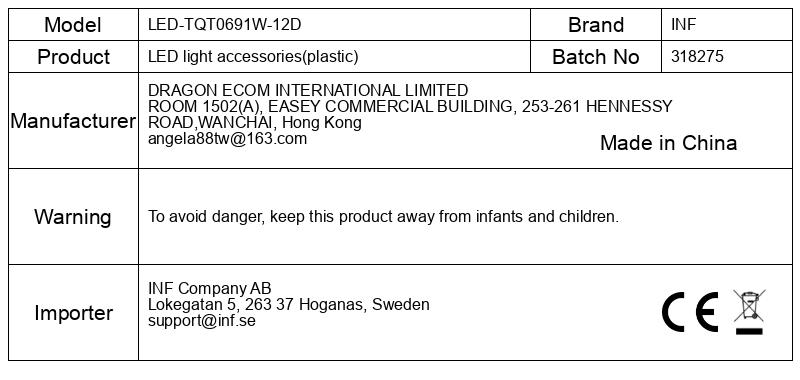 Da bi se izognili nevarnosti, hranite ta izdelek izven dosega dojenčkov in otrok.