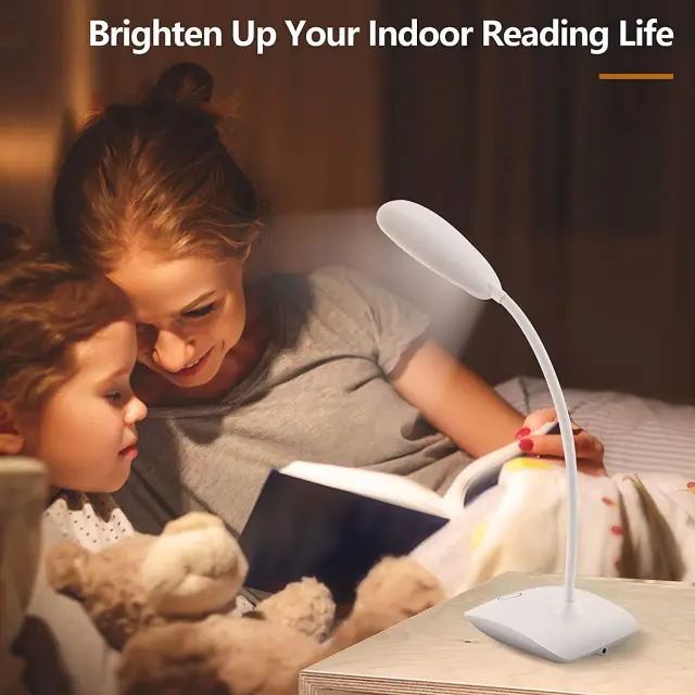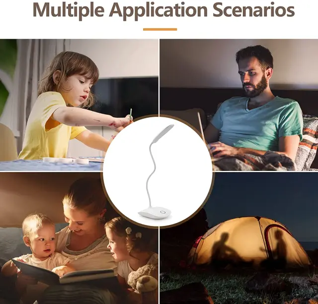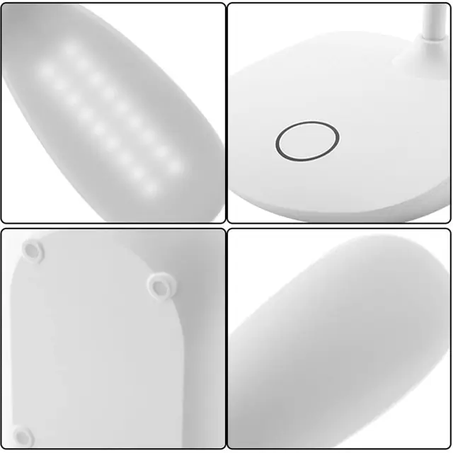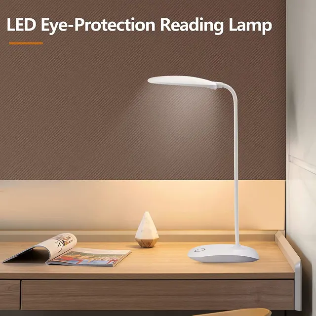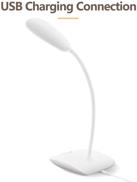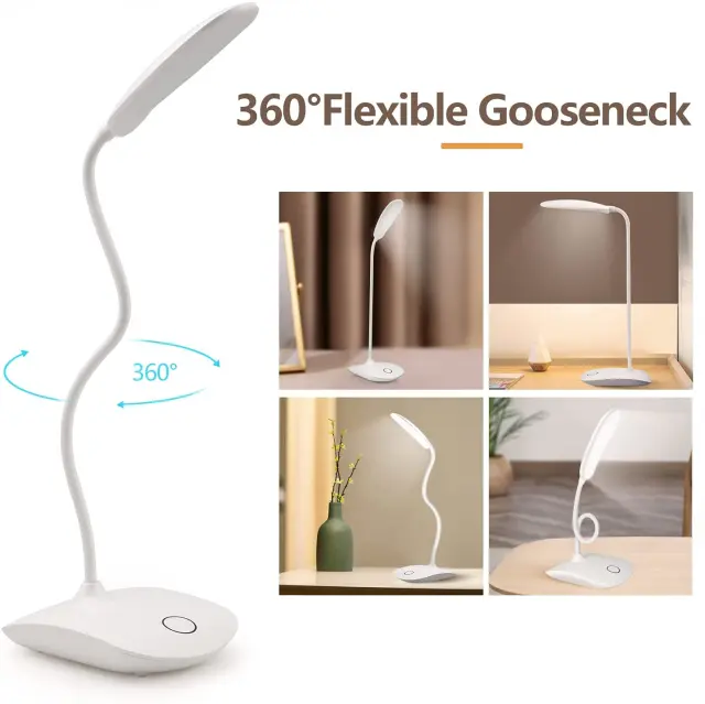 Polnilna LED namizna svetilka z zatemnitvijo in upogljivo nogo, bela