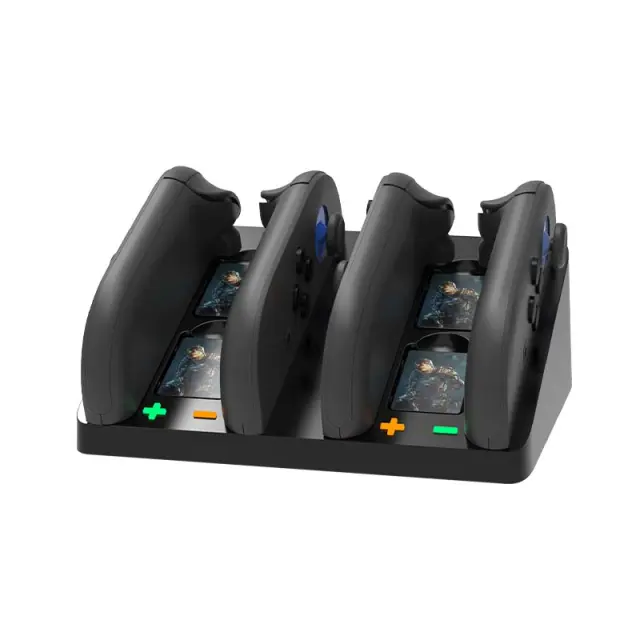 Učinkovito polnjenje: Ta polnilna postaja omogoča hkratno polnjenje do štirih naprav SWITCH2, kar vam prihrani čas in ohranja vašo igralno opremo organizirano. Postaja zagotavlja učinkovit prenos energije, ki zagotavlja, da so vaše naprave pripravljene za uporabo, ko jih potrebujete. Nič več čakanja na posamezno polnjenje – napolnite celotno napravo hkrati.