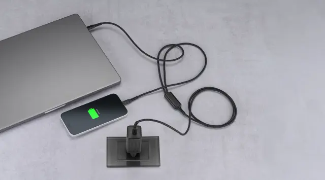 • Visoka zmogljivost do 140W: Kabel podpira skupno moč do 140W (Power Delivery), kar omogoča hitro napajanje tudi najzahtevnejših naprav. Ob hkratni uporabi obeh priključkov inteligentna elektronika poskrbi za optimalno porazdelitev energije med napravama.