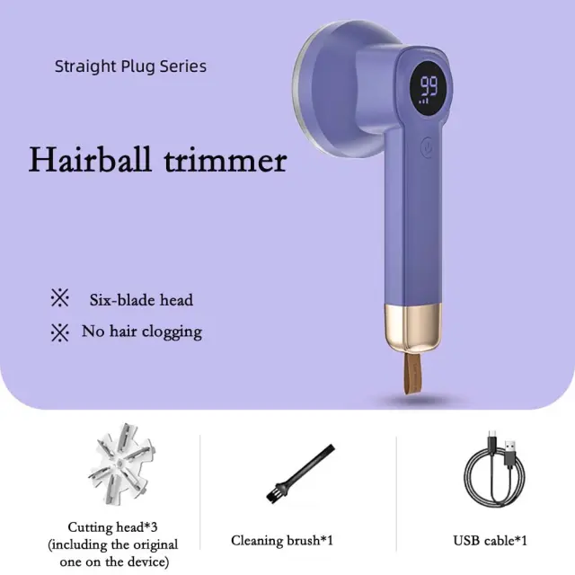 Polnilni odstranjevalec vlaken z digitalnim zaslonom in 2 rezili Purple