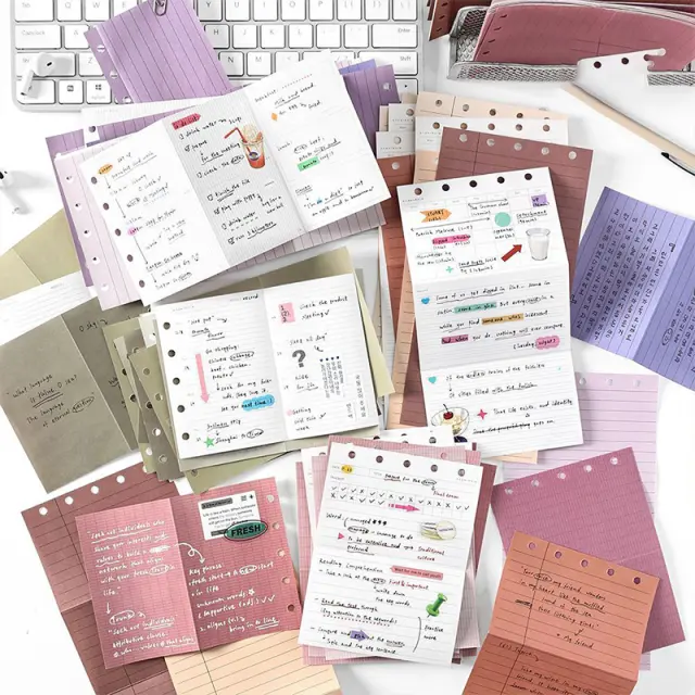 Visokokakovosten papir: Izdelan iz vrhunskega papirja, ta polnilni papir zagotavlja gladko pisanje. Dovolj je debel, da prepreči prebijanje črnila, zato je idealen za nalivna pisala, gel pisala in markerje.