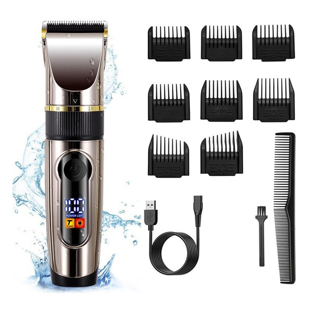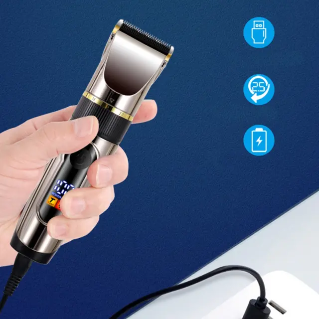 Polnilni strižnik za lase - Gun Grey, LED zaslon, vodoodporen, keramično rezilo