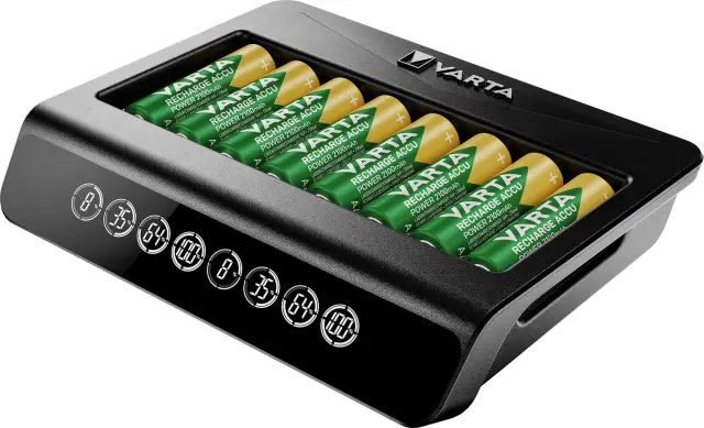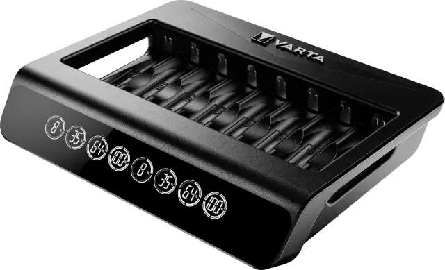 Polnilnik VARTA LCD Multi charger+ je opremljen s kablom USB-C in lahko napolni do 8 polnilnih baterij AA ali AAA NiMH v samo 4 urah. Sodoben in edinstven dizajn VARTA s prefinjenim LCD-zaslonom za prikaz polnjenja.