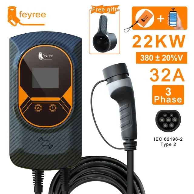 Polnilnik za električna vozila, 7.6KW/11KW/22KW moč, pametno upravljanje z aplikacijo, 32A 22KW 3Fazni, TYPE2