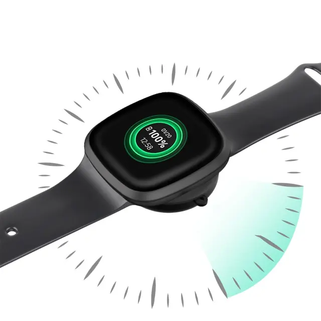 Hitro polnjenje: Ta polnilnik, zasnovan za optimalno hitrost polnjenja, zagotavlja, da se vaša pametna ura Fitbit Versa 3/4/Sense 1/2/Ace LTE hitro napolni. Njegova učinkovita zasnova zmanjšuje čas polnjenja, kar vam omogoča, da se vrnete k spremljanju svojih fitnes ciljev in ostanete povezani brez nepotrebnih zamud. Ne glede na to, ali dopolnjujete baterijo pred tekom ali jo polnite čez noč, ta polnilnik zagotavlja dosledno hitro in zanesljivo delovanje. Izkusite udobje hitrega polnjenja, s čimer bo vaš Fitbit vedno pripravljen na akcijo, združljiv z vašim hitrim življenjskim slogom.