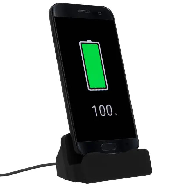 Priklopna postaja s priključkom USB tipa C. Odložite mobilni telefon in ga imejte na vidnem mestu in na dosegu roke. Omogoča polnjenje in/ali sinhronizacijo podatkov. Dimenzije: 7,3 x 5,2 x 5,5 cm.