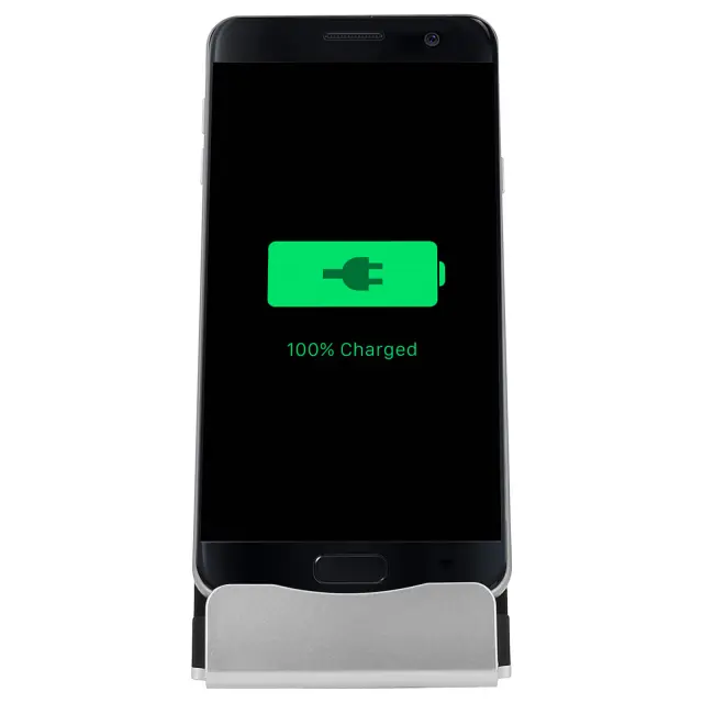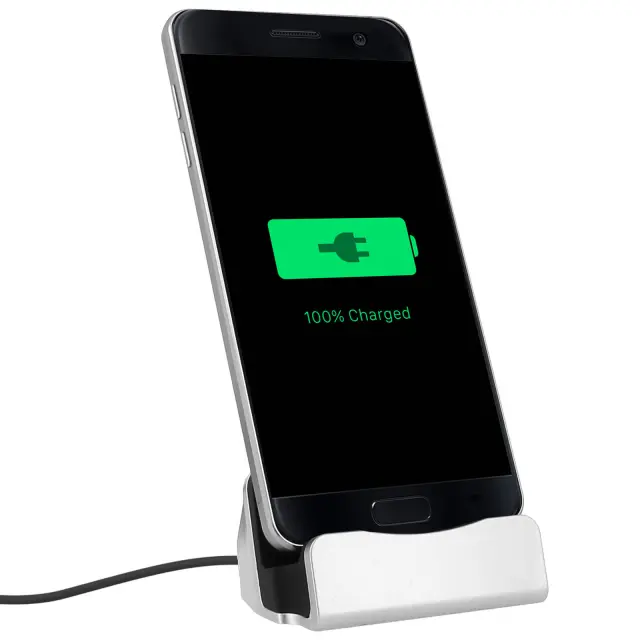 Priključna postaja z mikro-USB priključkom. Odložite mobilni telefon in ga imejte na vidnem mestu in na dosegu roke. Omogoča polnjenje in/ali sinhronizacijo podatkov. Dimenzije: 7,3 x 5,2 x 5,5 cm.