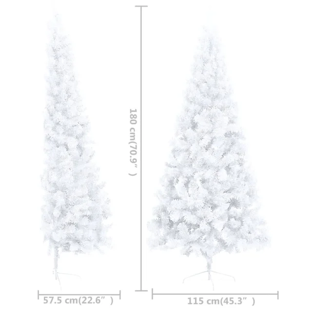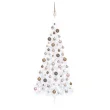 Polovična novoletna jelka z LED lučkami in bučkami bela 180 cm