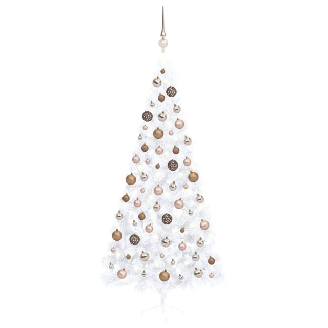 Polovična novoletna jelka z LED lučkami in bučkami bela 240 cm