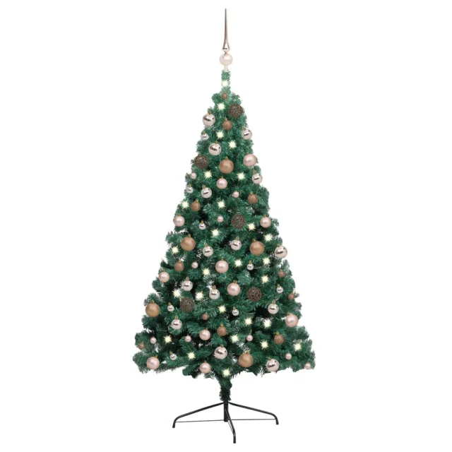 Polovična novoletna jelka z LED lučkami in bučkami zelena 240cm