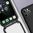 Crn etui s kablom za iPhone 11 Pro. To ohišje iz polikarbonata in silikonskega gela šciti mobilni telefon pred udarci in praskami. Ima nastavljiv 80 cm pleten najlonski trak za nošenje telefona okoli vratu ali kot naramnico.