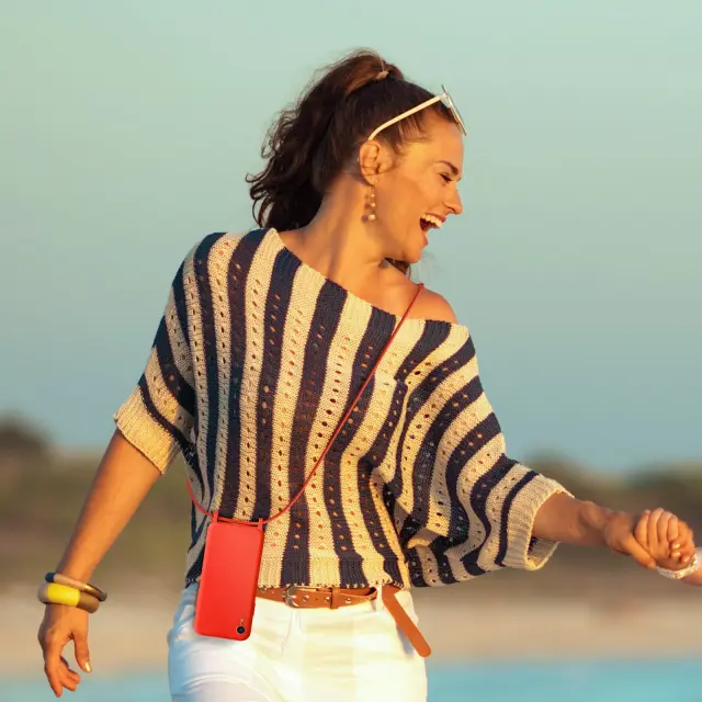 Poltoga etui na vrvico za iPhone XR z mehko notranjostjo, ovratnikom - rdeca