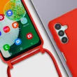 Poltoga etui na vrvico za Samsung Galaxy A04s in A13 5G z mehko notranjostjo, ovratnikom - rdeca
