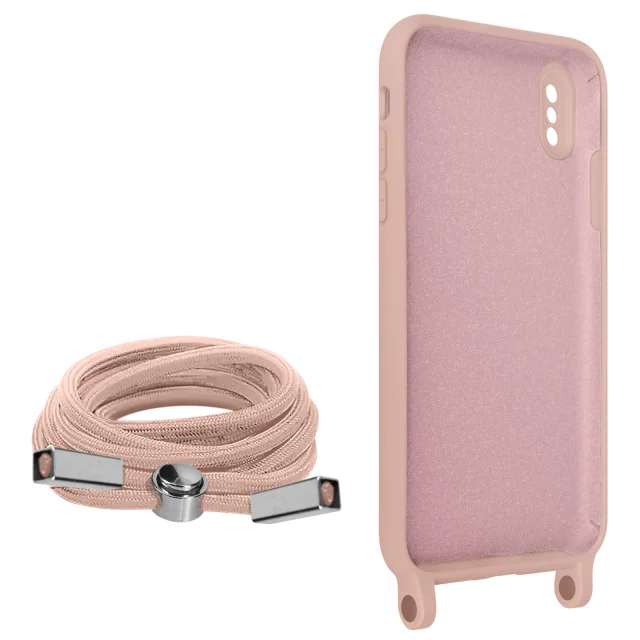 Poltrdi ovitek z vrvico za iPhone XS Max z mehko notranjostjo, ovratnikom - roza
