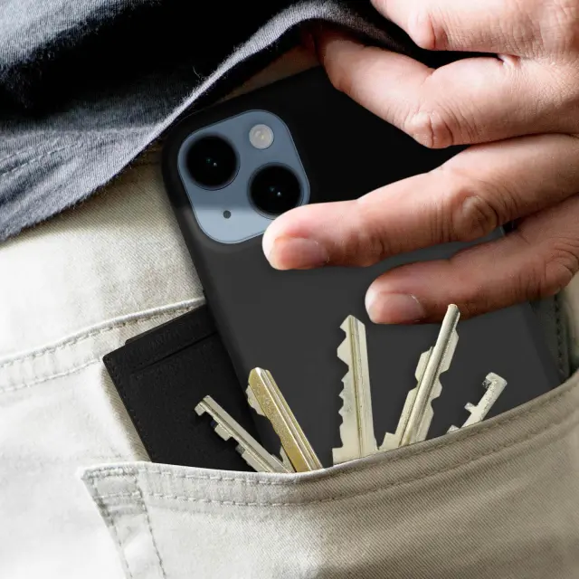 Crn ovitek za iPhone 14. Zasnovan iz poltrdnega silikona nudi ucinkovito zašcito pred nevarnostmi. Zahvaljujoc matiranemu zakljucku preprecuje prstne odtise. Popolnoma se ujema z obliko vaše naprave.