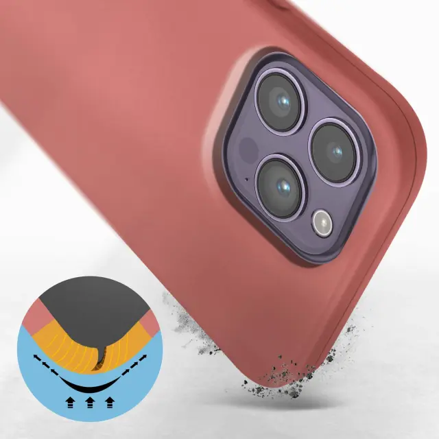 Roza etui za iPhone 14 Pro Max. Zasnovan iz poltrdnega silikona nudi ucinkovito zašcito pred nevarnostmi. Zahvaljujoc matiranemu zakljucku preprecuje prstne odtise. Popolnoma se ujema z obliko vaše naprave.