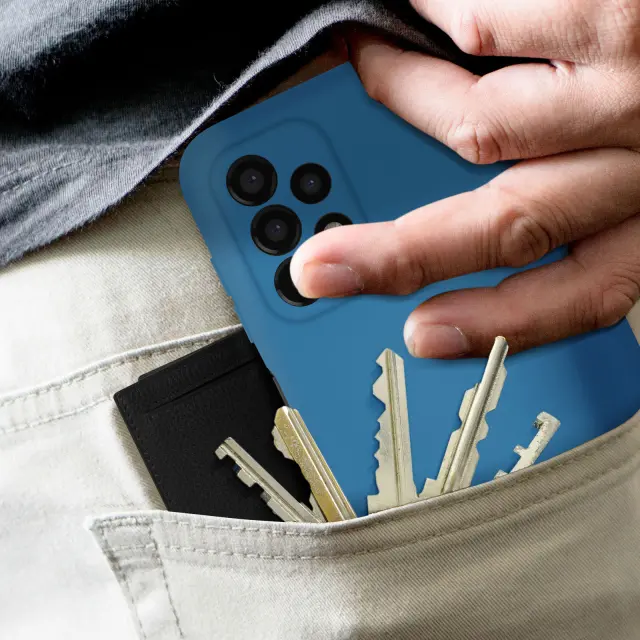 Zaščitna torbica posebej oblikovana za Samsung Galaxy A13. Učinkovito ščiti vaš pametni telefon pred vsakodnevnimi udarci in praskami. Mehak na dotik: nudi odličen oprijem in prijeten občutek. Prav tako se izogne prstnim odtisom zaradi matiranega zaključka.