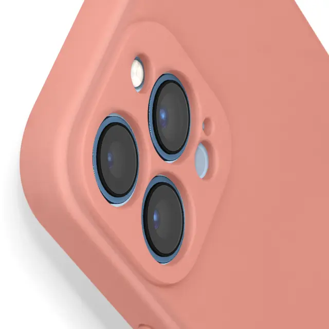 Roza etui za iPhone 13 Pro Max. Ta poltogi ohišje šciti vaš mobilnik pred padci in praskami. Preoblikuje enoto kamere za vecjo varnost. Etui z mehkim silikonskim zunanjim premazom in mehkim notranjim zakljuckom.
