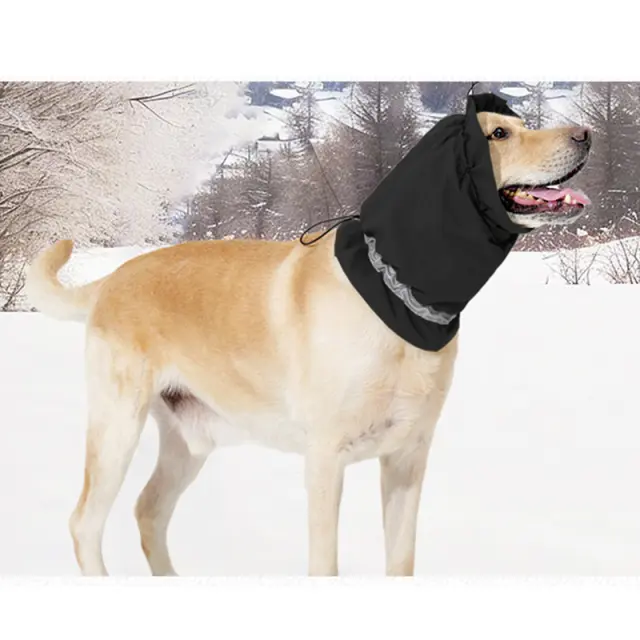Vodoodporna in topla: Ta pasja kapuca je narejena iz vodoodporne tkanine, ki ohranja glavo in ušesa vašega psa suha in udobna v dežju ali snegu. Notranja podloga iz flisa zagotavlja dodatno toploto v hladnih dneh.