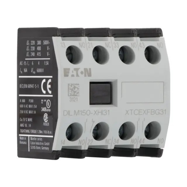 Na voljo z: Eaton (Moeller) pomožni stikalni modul 4p. 3S1Ö DILM150-XHI31, enota pakiranja: 1 kos, EAN: 4015082779498