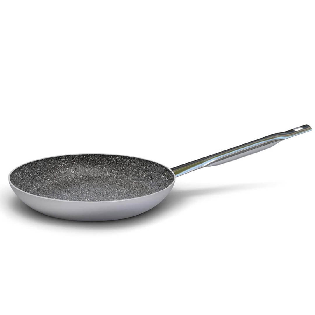 Ballarini Altacucina ponev profesionalne serije 6900 je izdelana iz aluminija in trpežne granitne prevleke "KERASTONE PROFI GRANITE" proti prijemanju hrane (brez PFOA, težkih kovin in niklja), z visoko odpornostjo proti obrabi. Primerna je za vse kuhalne površine, vključno z indukcijo. Testirana je bila v velikih restavracijskih obratih, zato jo priporočajo najzahtevnejši gastronomski mojstri. Dolg, robusten ročaj iz nerjavečega jekla omogoča varno in enostavno rokovanje s ponvijo. Ponev v premeru meri 32 cm, skupna dolžina z ročajem pa je 63,5 cm. Za ohranitev granitne prevleke priporočamo ročno pomivanje. Primerna je za uporabo v pečici do 250°C.