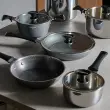 POMEMBNO: Pred prvo uporabo ponev premažite z oljem. To dejanje je treba občasno ponoviti. Indukcijsko segrevanje je treba izvajati postopoma. Prazne posode ne pregrevajte.