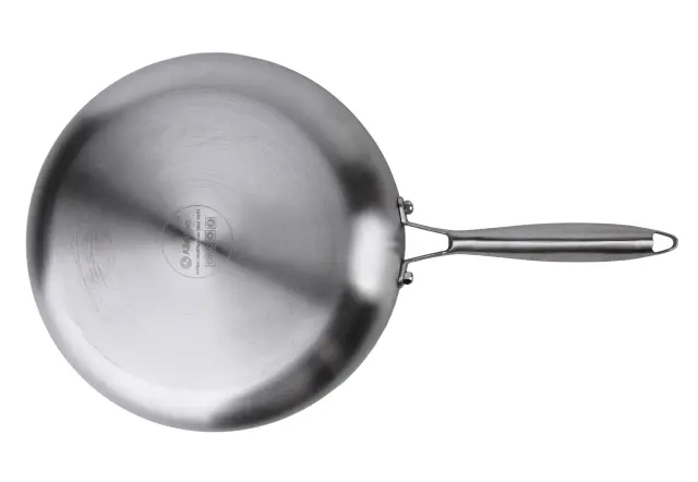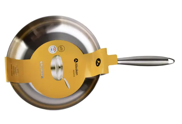Jeklena ponev Allesken RESISTIA Ø30 cm je zanesljiva izbira za vsakodnevno kuhanje, kjer želite trpežnost, stabilno segrevanje in urejen videz v kuhinji. Izdelana je iz nerjavnega jekla s srebrnim sijajem ter zasnovana za udobno in varno rokovanje.