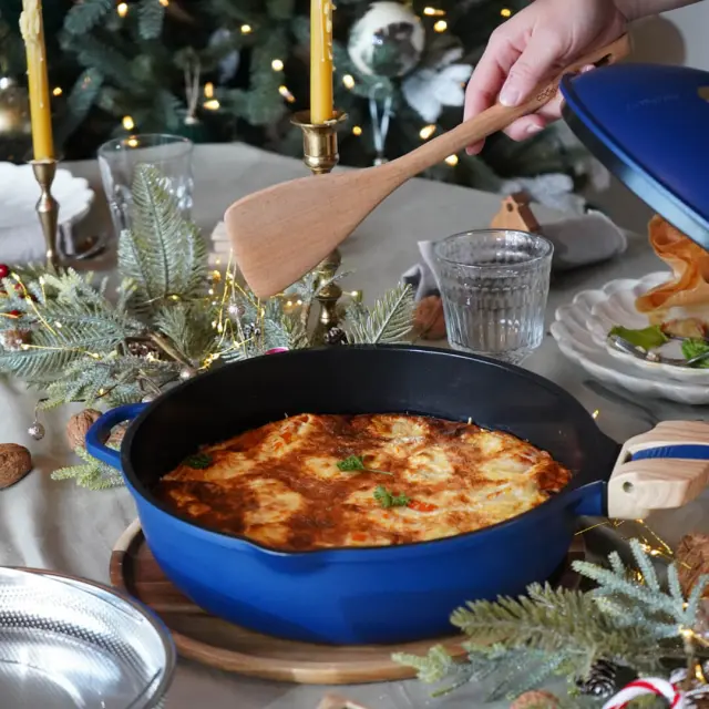 Odkrijte Cookut Fabuleuse 8-v-1, edinstveno in inovativno ponev, ki bo popolnoma spremenila vaš način kuhanja! S premerom 28 cm (kapaciteta 4,5 litra) je primerna za pripravo obrokov za 1 do 8 oseb. Idealna je tako za vsakodnevno uporabo kot tudi za posebne priložnosti. Zasnovana je tako, da nadomešča kar osem različnih kuhinjskih pripomočkov: ponev, ponev za cvrtje, ponev za praženje, kozico za enolončnico, soparnik, cvrtnik, pekač in tortni pekač. S to ponvijo lahko preprosto pripravite raznolike jedi – od ocvrtih jajc, gratiniranega krompirja, pečenega piščanca, juh, dušene zelenjave do tort in pic. Ne glede na to, ali kuhate za eno ali več oseb, vam Fabuleuse omogoča enostavno in učinkovito pripravo okusnih obrokov. Izdelana je iz 100% reciklirane kovine - aluminija (brez PFOA in niklja). Vrhunski premaz proti prijemanju omogoča kuhanje brez oz. z malo dodajanja maščobe, hkrati pa zagotavlja dolgo življenjsko dobo. Ponev se ponaša z dolgim in kratkim odstranljivim ročajem za enostavno uporabo in shranjevanje. Zahvaljujoč snemljivim ročajem jo zlahka shranite tudi v manjših kuhinjah. Ročaj na pokrovu ostane hladen tudi med kuhanjem. Priložena košara za kuhanje na pari ali cvrtje ter lesena lopatka nudita še več možnosti kuhanja. Fabuleuse je primerna za vse vrste kuhalnih površin – indukcijska, plinska, električna in steklokeramična. Ob odstranitvi ročajev jo lahko uporabite tudi v pečici do 240°C, zato je popolna kot pekač. Primerna je za pomivanje v pomivalnem stroju. Preizkusite jo in odkrijte nov način kuhanja s samo enim pripomočkom! Dimenzije: dolžina z ročajem 24 cm, višina brez pokrova 8,5 cm, višina s pokrovom 17 cm / Premer košare: 25 cm Francoska znamka Cookut je del trajnostnega, ekološkega in etičnega proizvodnega pristopa. Ta ambiciozen cilj vključuje zlasti drastično zmanjšanje proizvodnje plastike, odpadkov in konec zastarelosti izdelkov. Svoje zaveze so formalizirali s pridobitvijo statusa podjetja s poslanstvom. To jim omogoča, da definirajo svoje naslednje ekološko odgovorne zaveze, ki jih bo spremljal in nadzoroval neodvisen organ. V tem zagonu so bili izbrani, da se pridružijo skupnosti Coq Vert, ki jo upravlja BPI France v sodelovanju z ADEME in Ministrstvom za ekološki prehod.