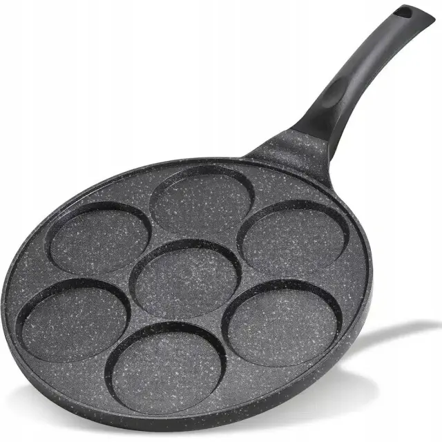 Ponev za palačinke je nepogrešljiv pripomoček v vsaki kuhinji! Zahvaljujoč njej lahko svoje najljubše jedi ocvrete v hipu. Vaše palačinke in palačinke bodo vedno popolnoma enakomerne. Premaz proti prijemanju pomeni, da lahko za peko porabite do 80 % manj maščobe! Zahvaljujoč temu boste jedi pripravili ne le hitro, ampak tudi zdravo. Ustvarite nove recepte ali kuhajte, kar vam je najbolj všeč.