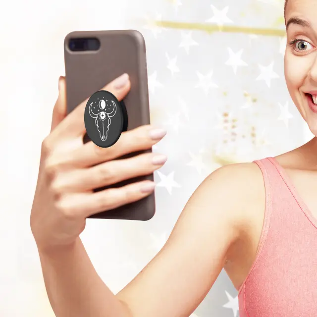 Oblikoval ga je PopSockets in je idealen za prilagoditev vašega pametnega telefona ali etuija. Njegova zasnova in vzorec lobanje bosta telefonu prinesla gotski in avtoritativen slog. Popolna uporabnost: popolnoma varno boste lahko pošiljali besedilna sporočila, snemali selfije in video posnetke. Praktična in uporabna podpora za vodoravni ogled videoposnetkov.