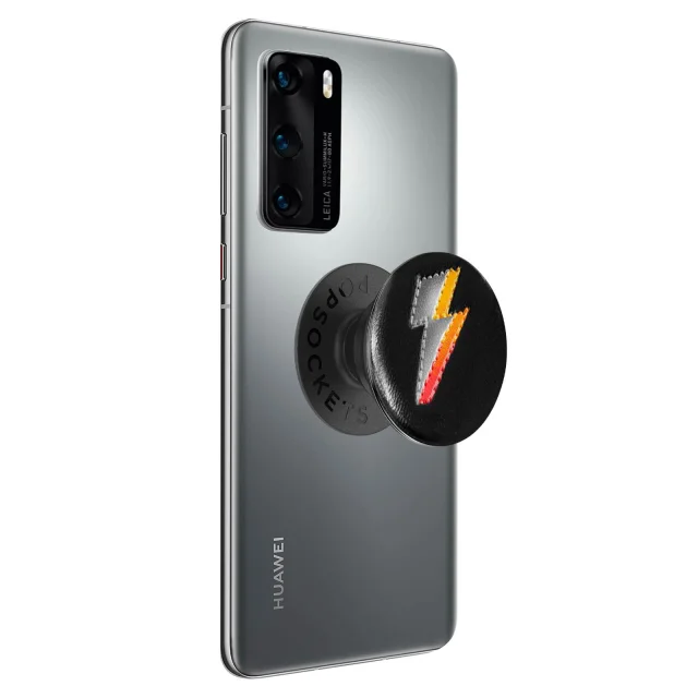 PopGrip Lightning Design Leather Effect PopSockets, držalo in držalo za video za pametni telefon - crna