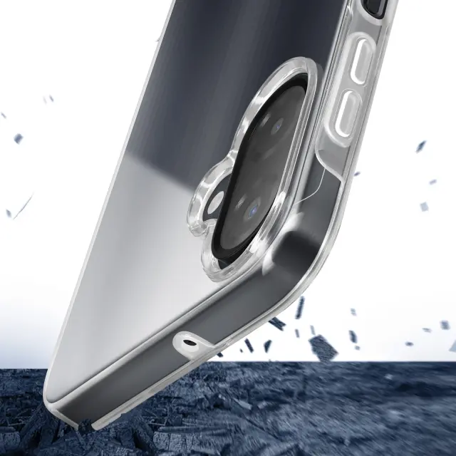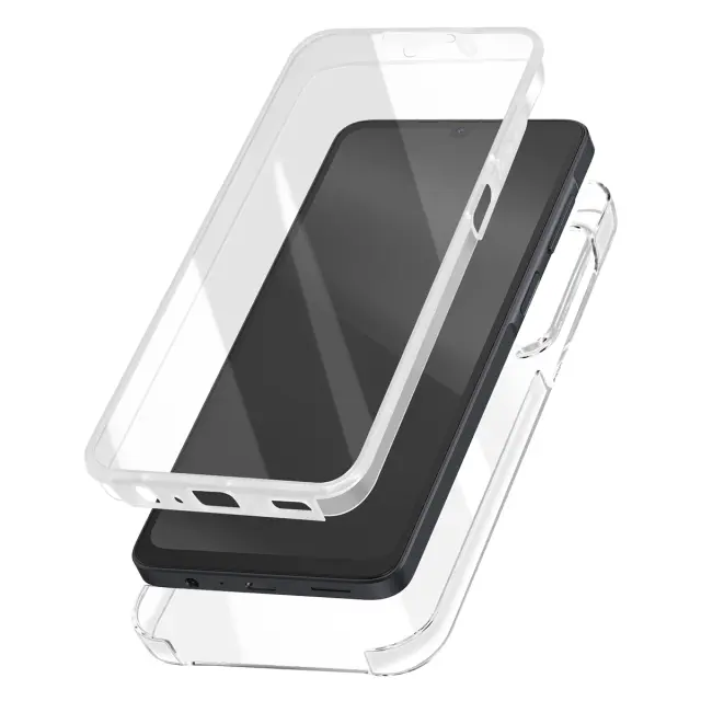 Celotna 360° lupina s trdnim polikarbonatnim hrbtom in prozorno sprednjo ploščo, občutljivo na dotik. Mehka silikonska oblika učinkovito blaži bočne udarce in padce. Sprednja membrana, občutljiva na dotik, omogoča tekočo uporabo zaslona brez krčenja. Tanka, popolnoma prozorna zasnova, ki ohranja prvotni videz pametnega telefona.
