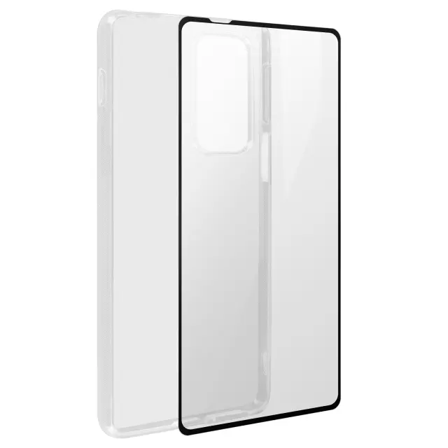 360° prozoren zaščitni paket z ukrivljenim kaljenim steklom s črnimi robovi, posebej zasnovan za Motorola Edge 20 Pro. Popolnoma ščiti vaš pametni telefon pred vsakodnevnimi udarci in praskami. Po meri izdelan etui iz silikonskega gela, prilagodljiv in odporen v vseh okoliščinah. Film iz kaljenega stekla s črnim robom ščiti vaš zaslon pred udarci in praskami (trdota 9H).