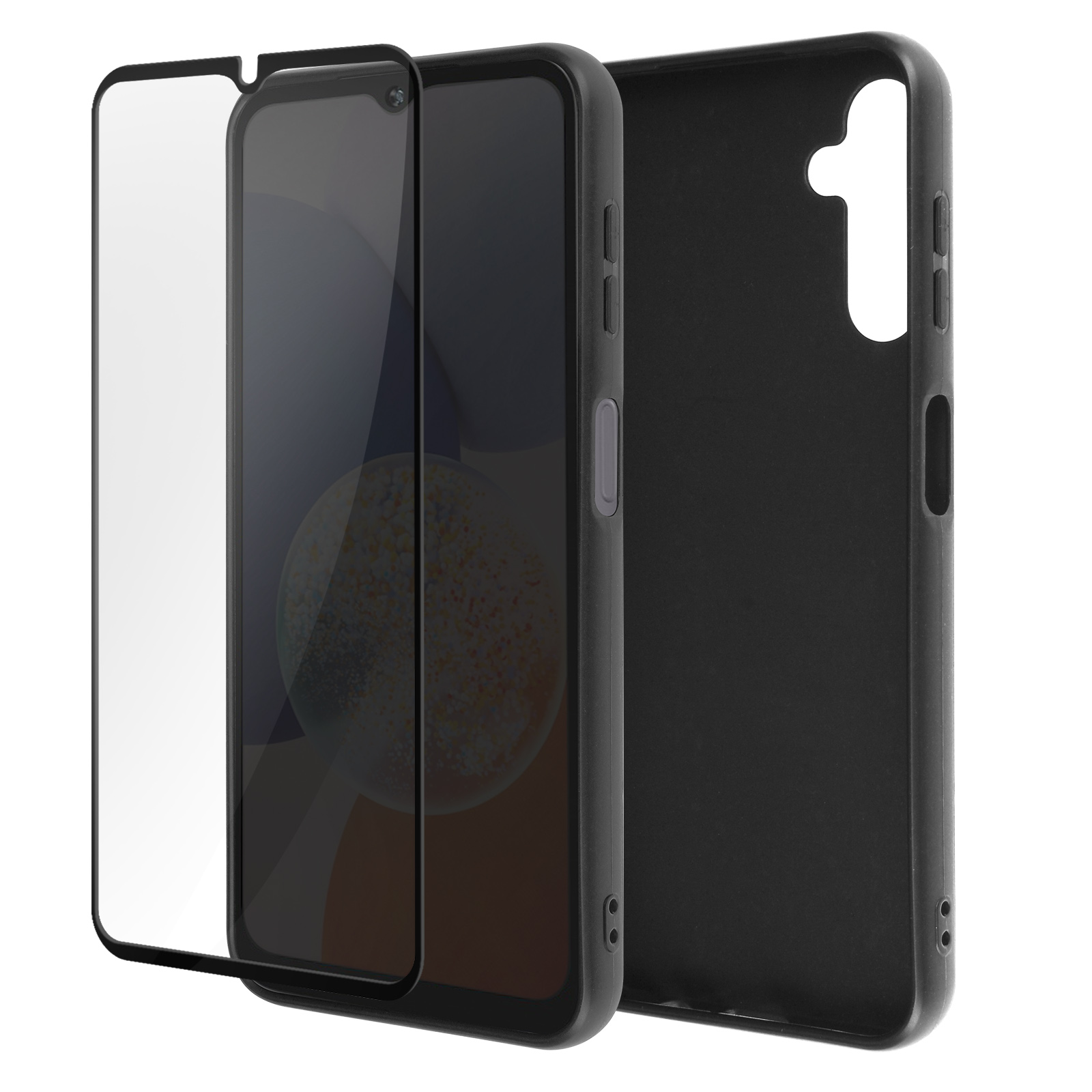 Zašcitni paket Samsung Galaxy A14 za 360° zašcito. Ovitek je izdelan iz silikonskega gela, odpornega na udarce in praske. Kaljeno steklo 9H pa šciti zaslon pred praskami, hkrati pa ohranja lastnosti zaslona.