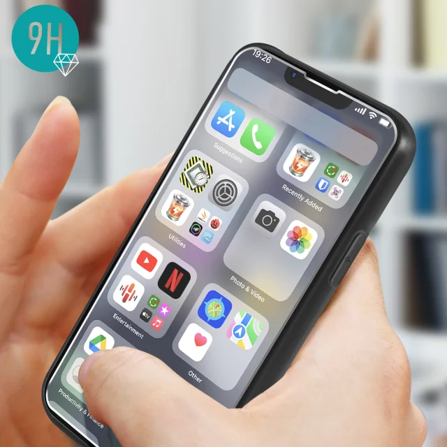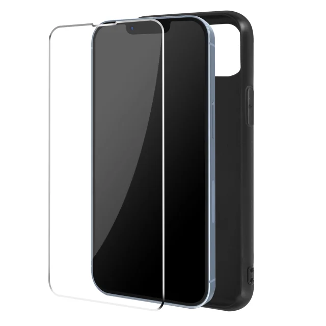 Popolna zašcita IPhone 13 Pro, mat crno silikonsko ohišje, kaljeno steklo proti prstnim odtisom