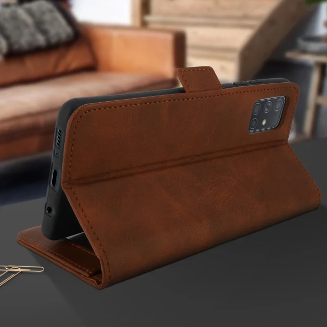 Popolna zašcita za funkcijo Wallet in Video Holder, ucinek teksturiranega usnja - rjava str. Samsung Galaxy A51