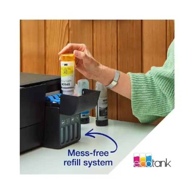 Odkrijte Epson EcoTank L3271, večfunkcijski tiskalnik, ki je zasnovan tako, da z lahkoto zadovolji vaše potrebe po tiskanju, optično branje in kopiranju. Ta naprava združuje visokokakovostno brizgalno tehnologijo z učinkovito uporabo črnila, zaradi česar je primerna za domače in pisarniško okolje. S svojimi možnostmi povezljivosti USB in Wi-Fi, vključno z Wi-Fi Direct, ponuja prilagodljivo integracijo v vsako nastavitev. EcoTank L3271 zagotavlja zmogljivost tiskanja visoke ločljivosti, ki dosega do 5760 x 1440 DPI za črne in barvne odtise, kar zagotavlja jasnost v vsaki podrobnosti.