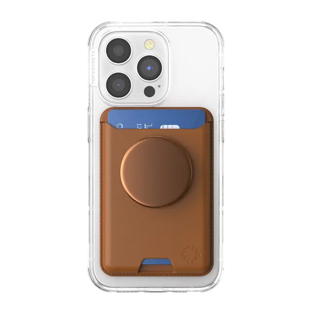 PopSockets, Ohišje za kartice MagSafe Model PopWallet s stojalom PopGrip in selfijem, Rjava