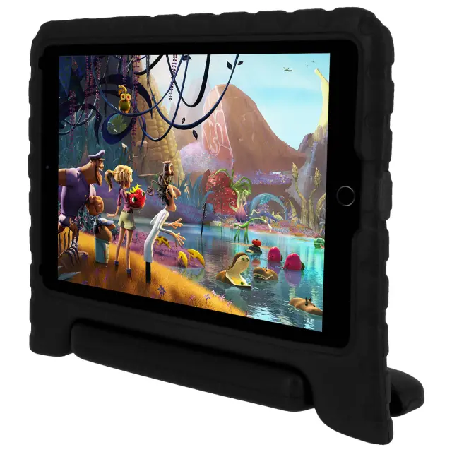 Posebna otroška torbica, odporna na udarce, za iPad 5/6/Air. Zagotavlja ucinkovito zašcito pred padci, udarci in praskami. Njegov oprijemalni rocaj omogoca transport in ga je mogoce preprosto zložiti, da služi kot podpora.