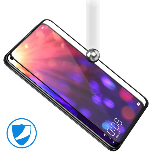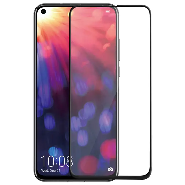 Posebej vnaprej izrezana zaščita zaslona za Honor View 20. Izdelana iz 2,5D kaljenega stekla - Debelina: 0,33 mm / Dizajn s črnim obrisom. Visok indeks trdote 9H: izjemno odporen na praske, udarce in ostre predmete. Oleofobni premaz, odporen na prstne odtise in maščobne sledi.