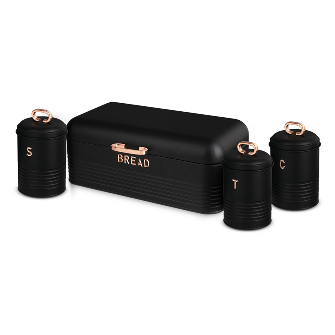Jeklena škatla za kruh s kompletom 3 kuhinjskih posod Berlinger Haus iz linije BLACK ROSE COLLECTION