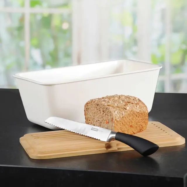 Praktična posoda za kruh Kesper poskrbi, da vaš kruh in pekovski izdelki dlje časa ostanejo sveži. Izdelana je iz kakovostne melaminske plastike v mat beli barvi, ki se lepo poda v vsako kuhinjo in je primerna za pomivanje v pomivalnem stroju. Pokrov iz FSC® certificiranega bambusa služi tudi kot priročna deska za rezanje. Kombinacija naravnega bambusa in sodobne plastike združuje estetiko in funkcionalnost, zato ej popolna izbira za vsako moderno kuhinjo.