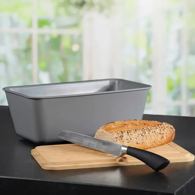 Praktična posoda za kruh Kesper poskrbi, da vaš kruh in pekovski izdelki dlje časa ostanejo sveži. Izdelana je iz kakovostne melaminske plastike v mat sivi barvi, ki se lepo poda v vsako kuhinjo in je primerna za pomivanje v pomivalnem stroju. Pokrov iz FSC® certificiranega bambusa služi tudi kot priročna deska za rezanje. Kombinacija naravnega bambusa in sodobne plastike združuje estetiko in funkcionalnost, zato ej popolna izbira za vsako moderno kuhinjo.